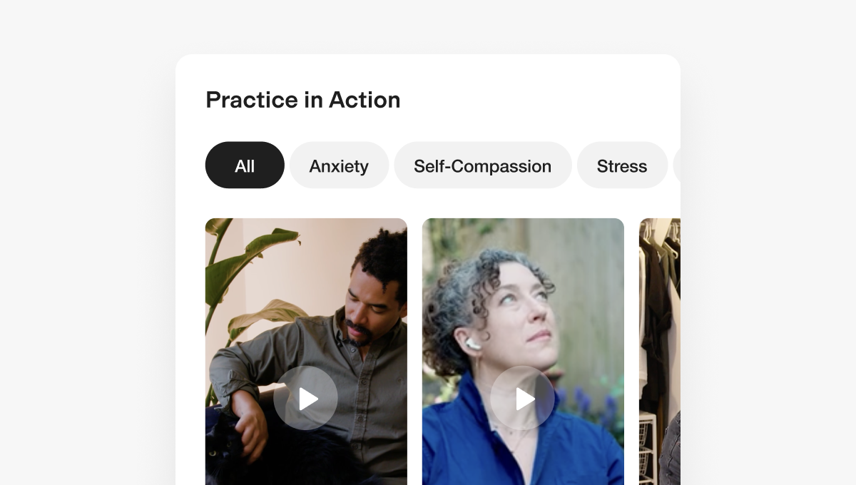 Practice in Action videos were previously created for a meditation challenge but weren’t accessible within the app. This high quality content now has a permanent, easily accessible home.